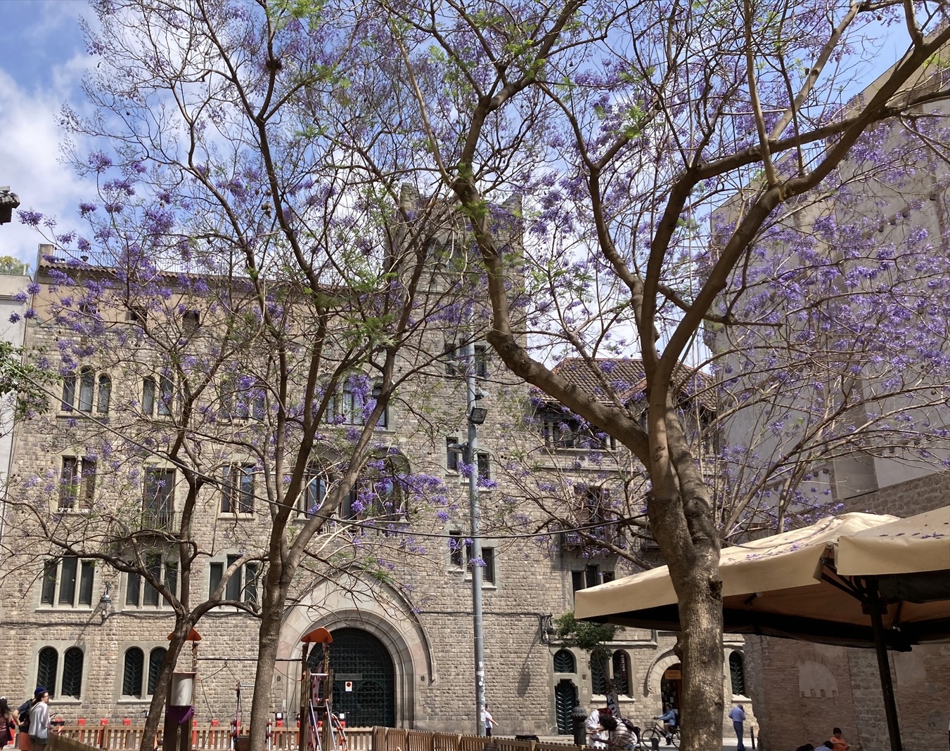 この木はジャカランダといい、この時期に花が咲くそうで、このあとバルセロナ市内のあちこちできれいに咲き誇ってるのをたくさん目にしたのでした。いい季節に来たな。