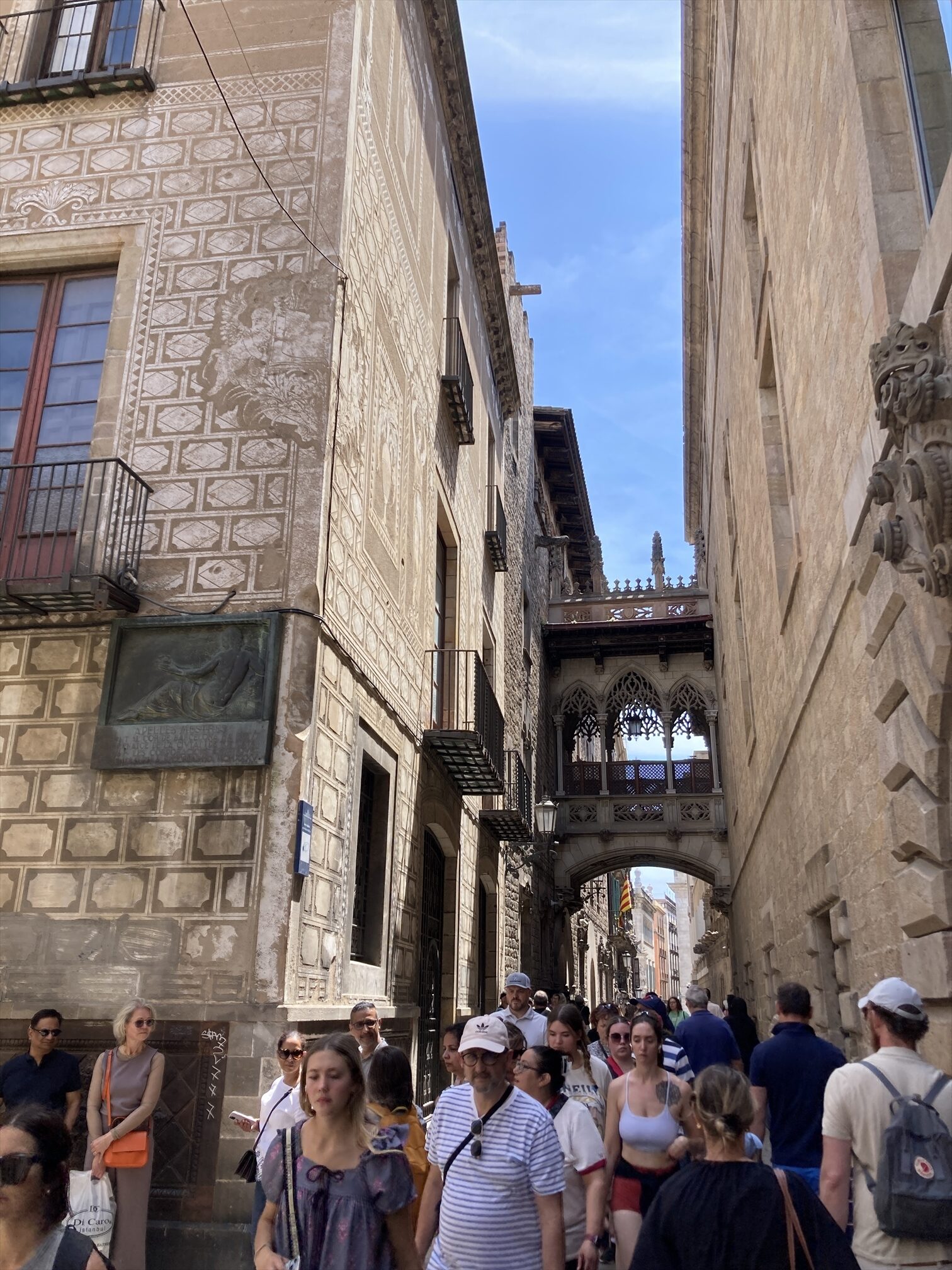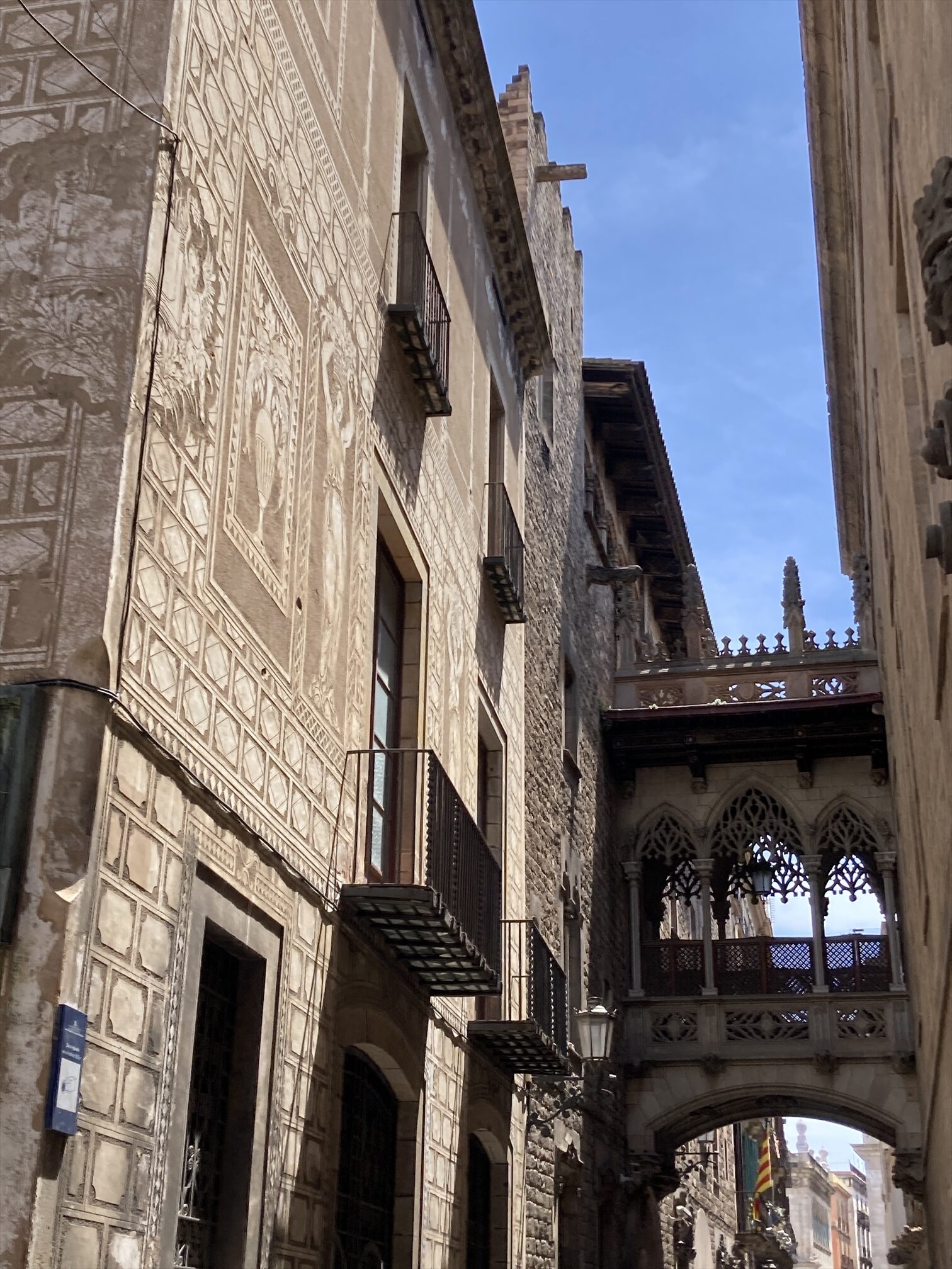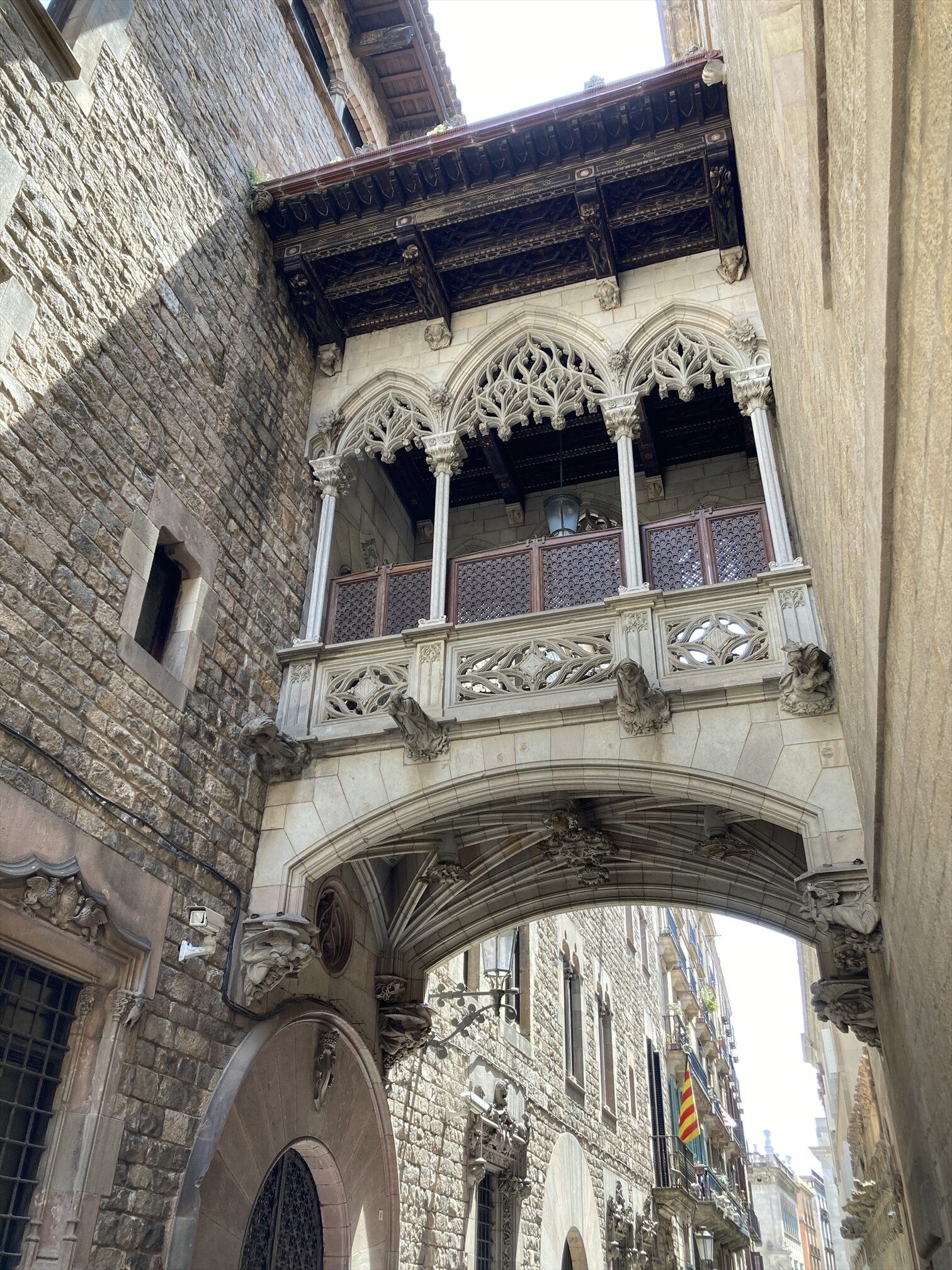 さてカテドラルを出て、旧市街路地の右往左往に戻りますというと、ほどなくバルセロナ旧市街名物らしき”かけはし”(ビズベ橋)に行き当たります。