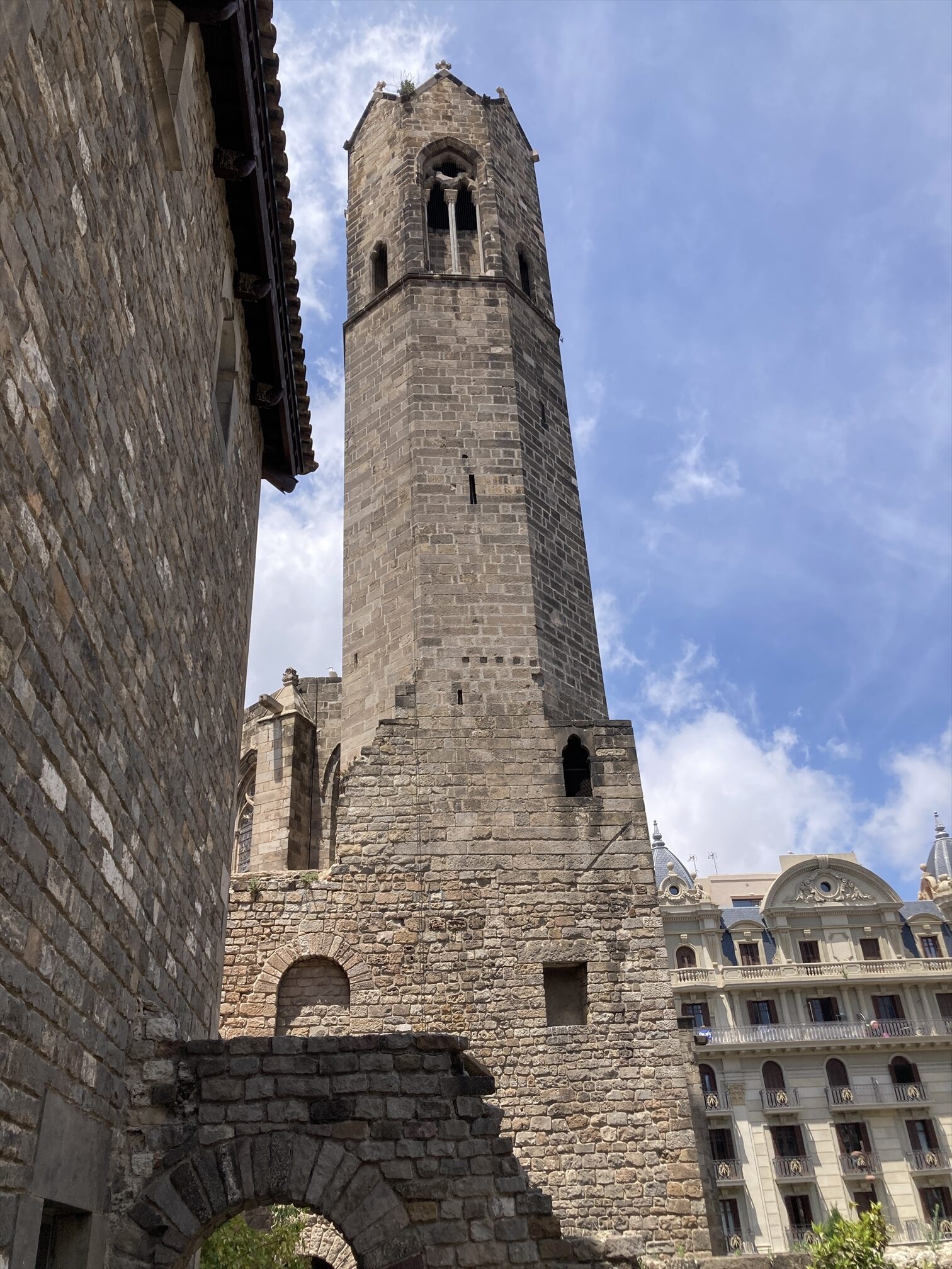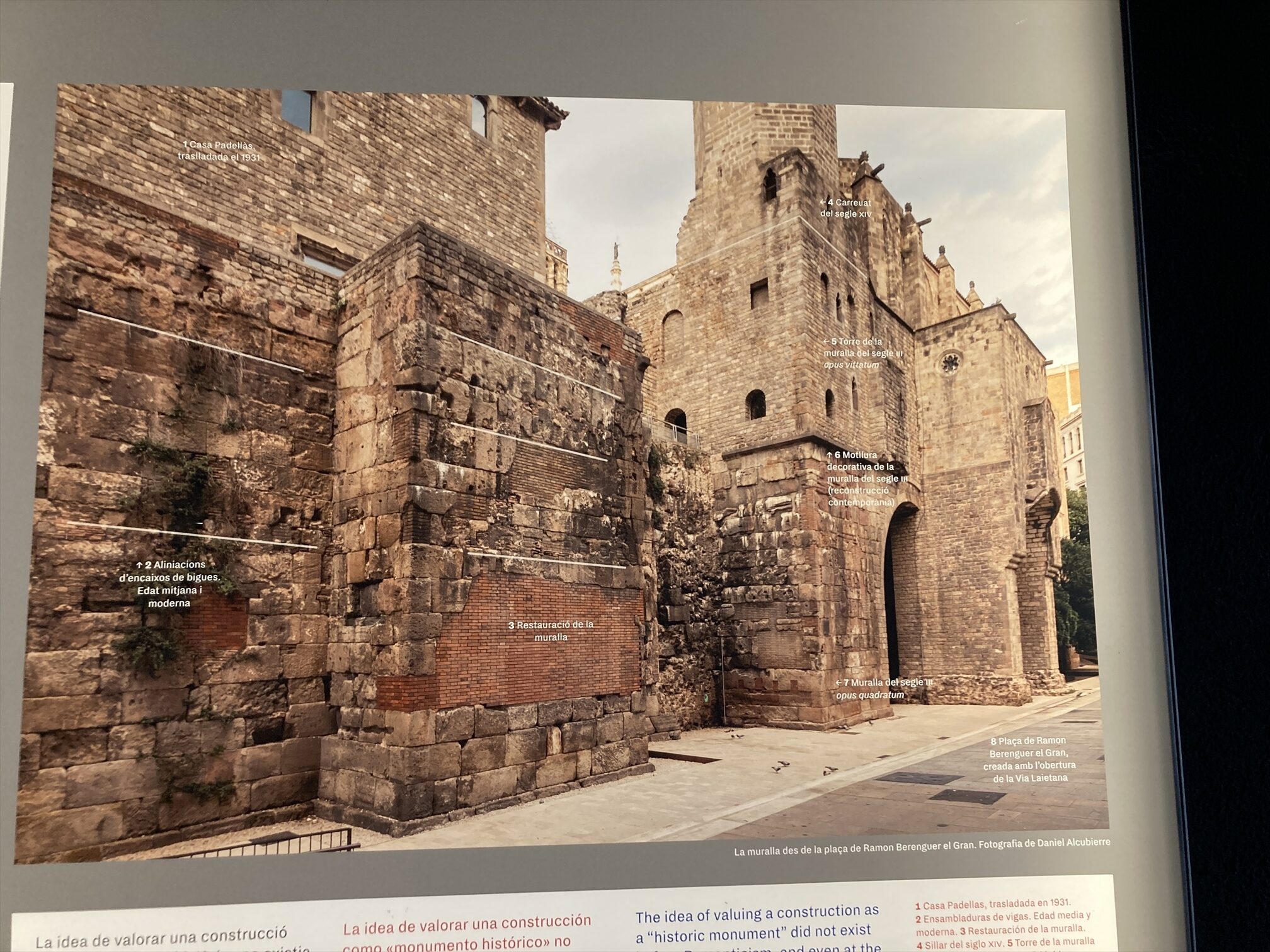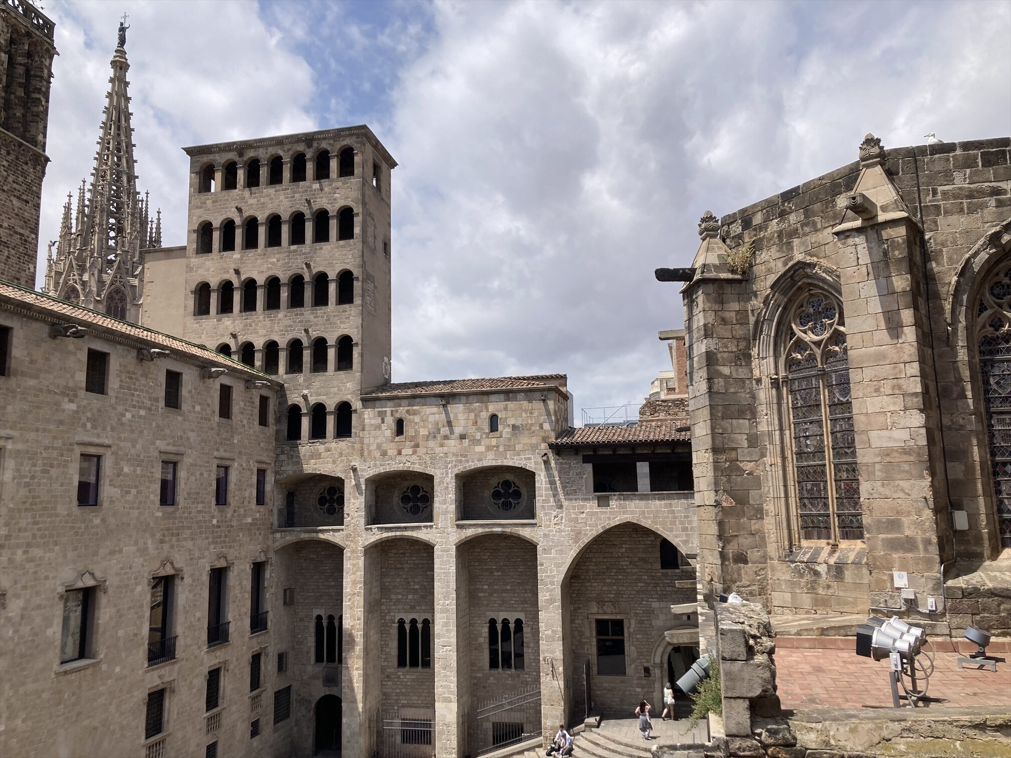古代ローマ時代にはここがバルセロナの町の中心地だったそうで、海側に向かって垂直・平行の2本のメインストリートがここで十字に交差していたという。周囲に比べると若干小高くなってた(タベルの丘)し、いまもなってるらしい。言われてみれば、少なくとも東西方向にはここが一番高くなってるなというのはわかる、感じかな、まあこの辺り一帯軽めの高低がわりとあちこちについてるんですが。
