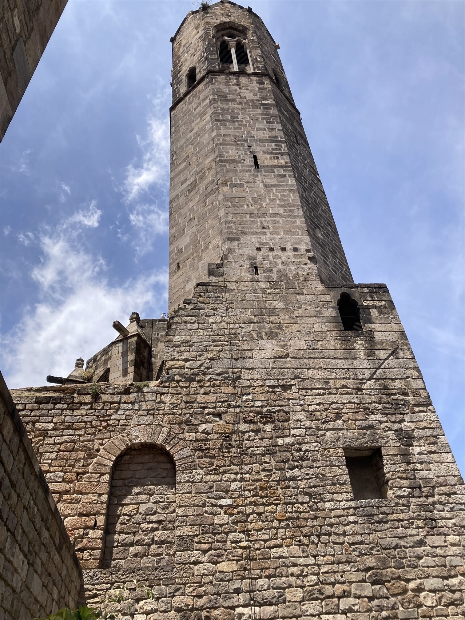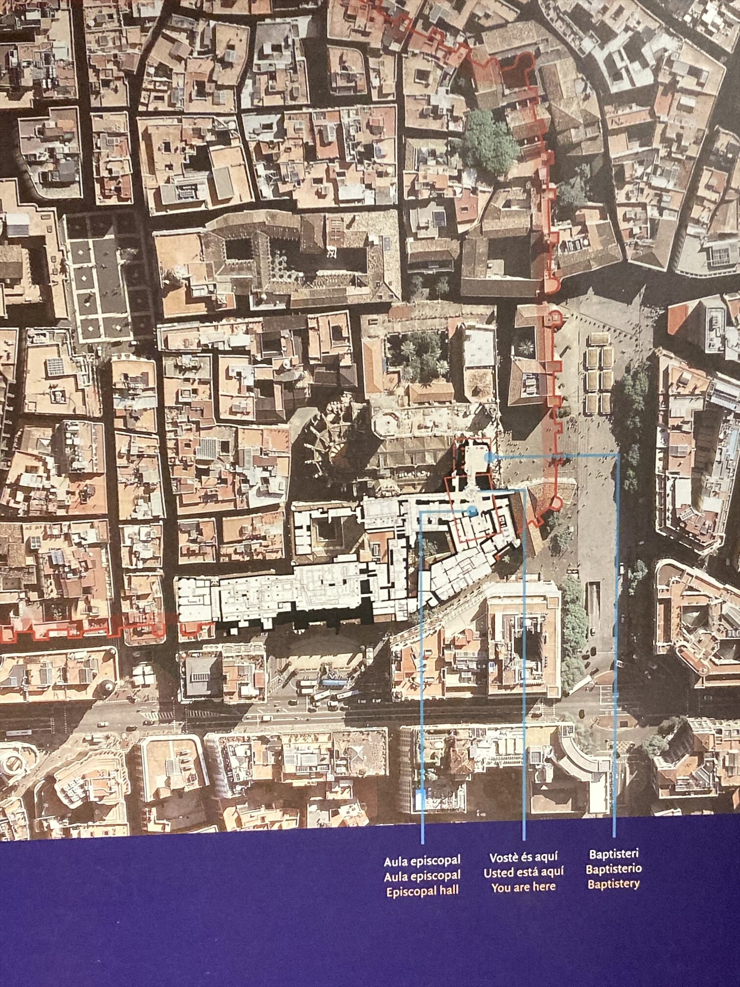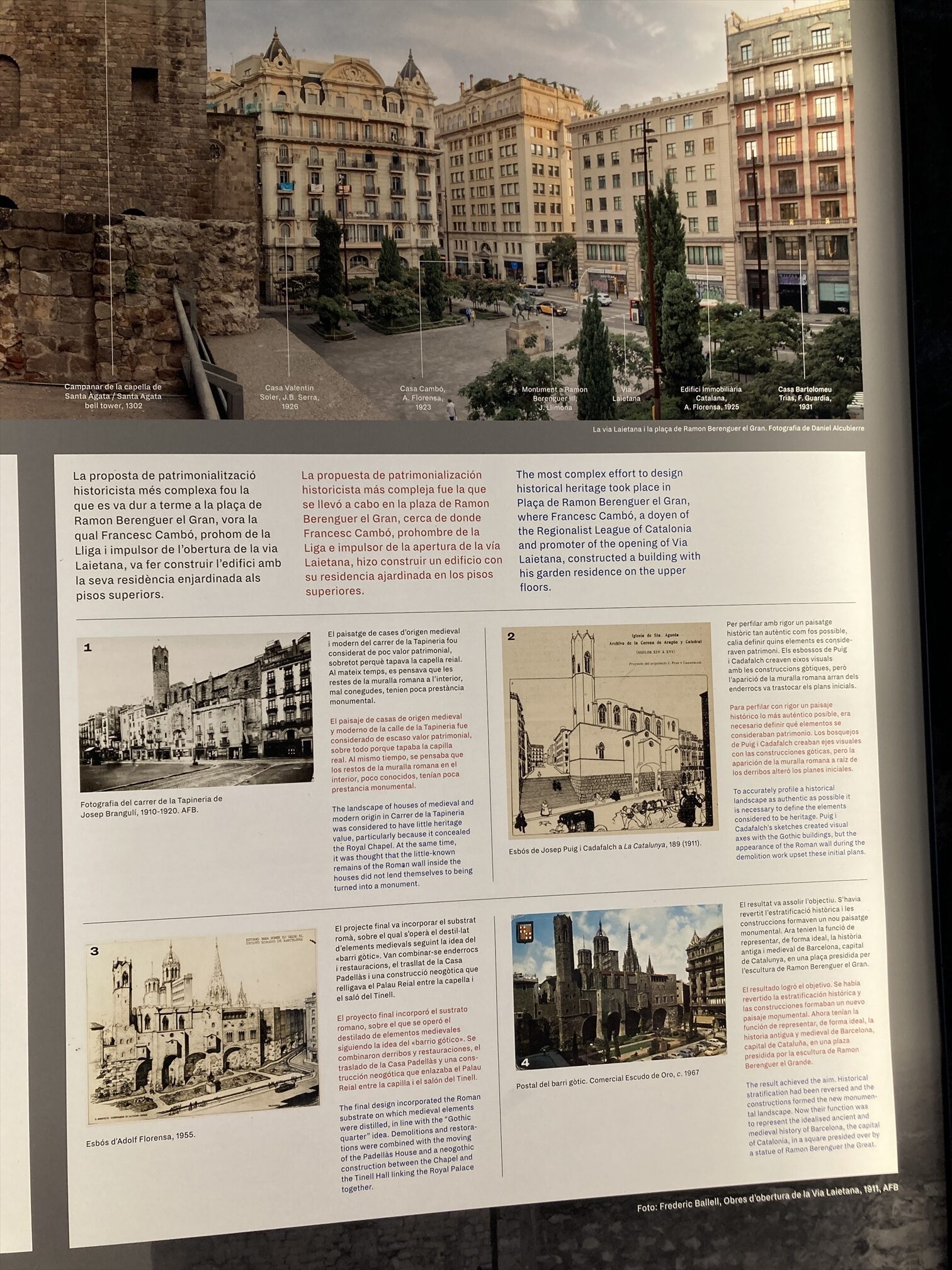 古代ローマ時代にはここがバルセロナの町の中心地だったそうで、海側に向かって垂直・平行の2本のメインストリートがここで十字に交差していたという。周囲に比べると若干小高くなってた(タベルの丘)し、いまもなってるらしい。言われてみれば、少なくとも東西方向にはここが一番高くなってるなというのはわかる、感じかな、まあこの辺り一帯軽めの高低がわりとあちこちについてるんですが。