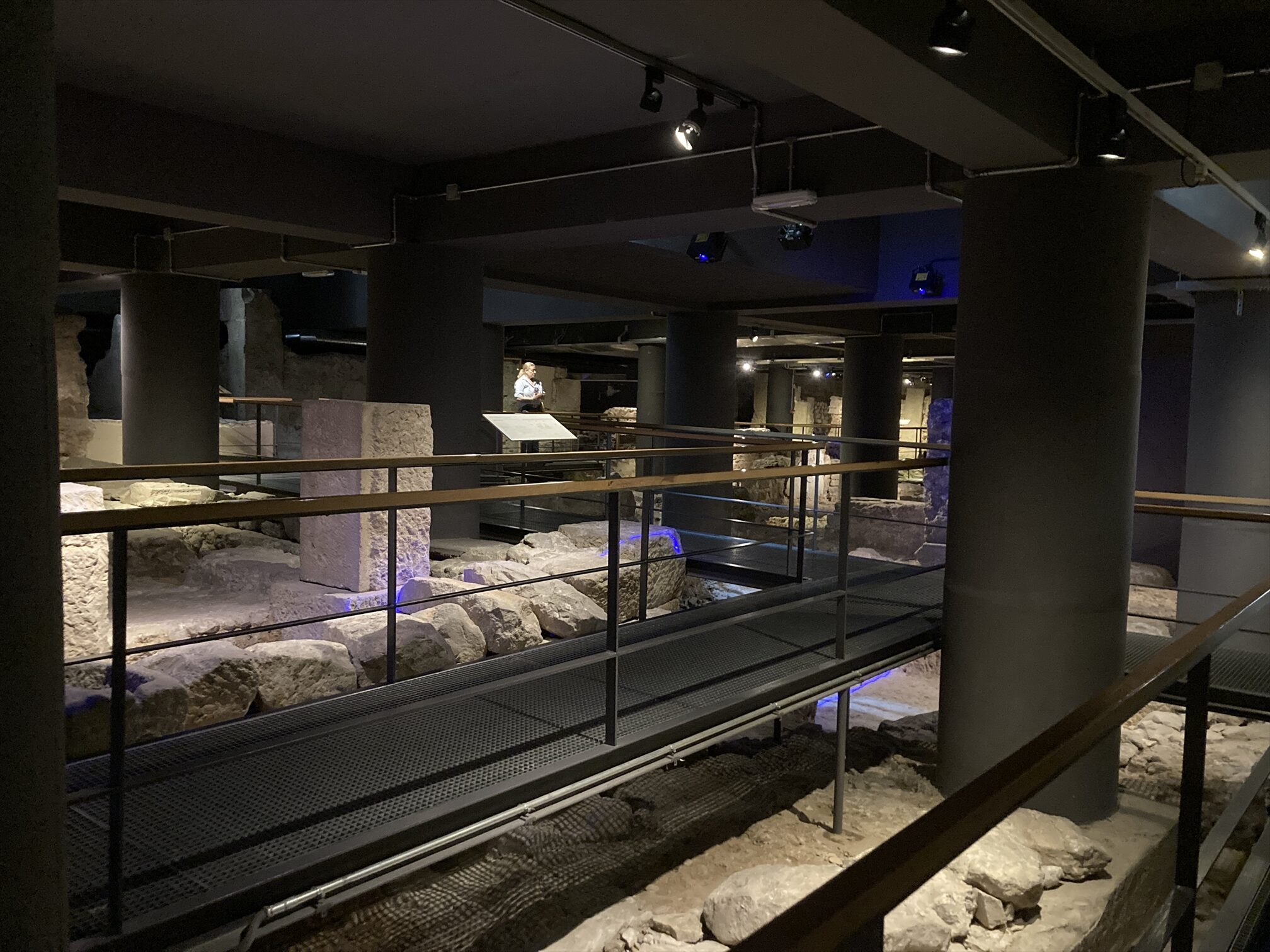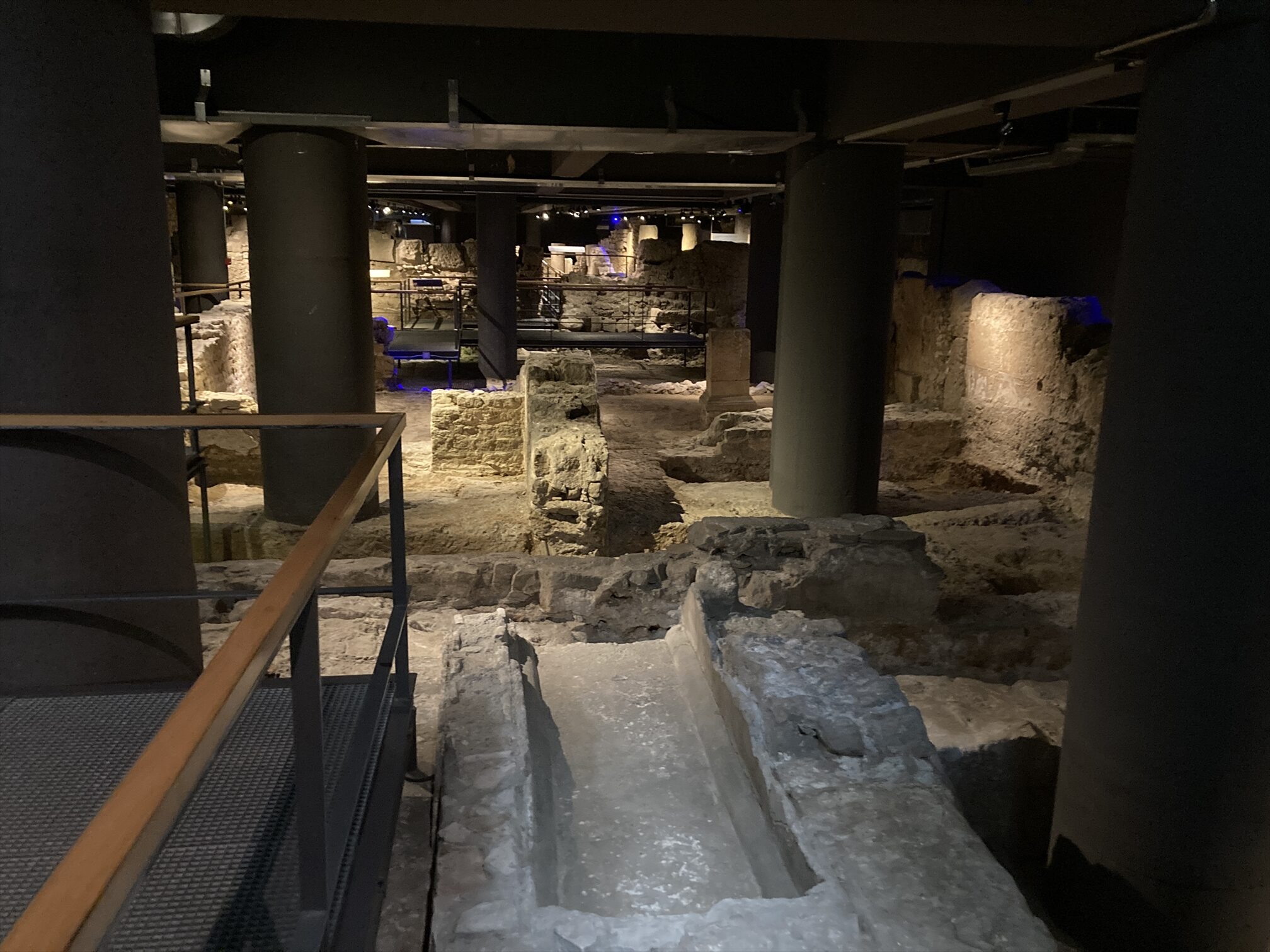 ここの地下には古代の遺構があるから、というんで下りてみて、よくある史跡展示かな、ふむふむ、と歩いてるのですが、えっと、そのわりには広すぎやせんか、歩いても歩いても展示が終わる気配がないんですけど、と思ってたら。