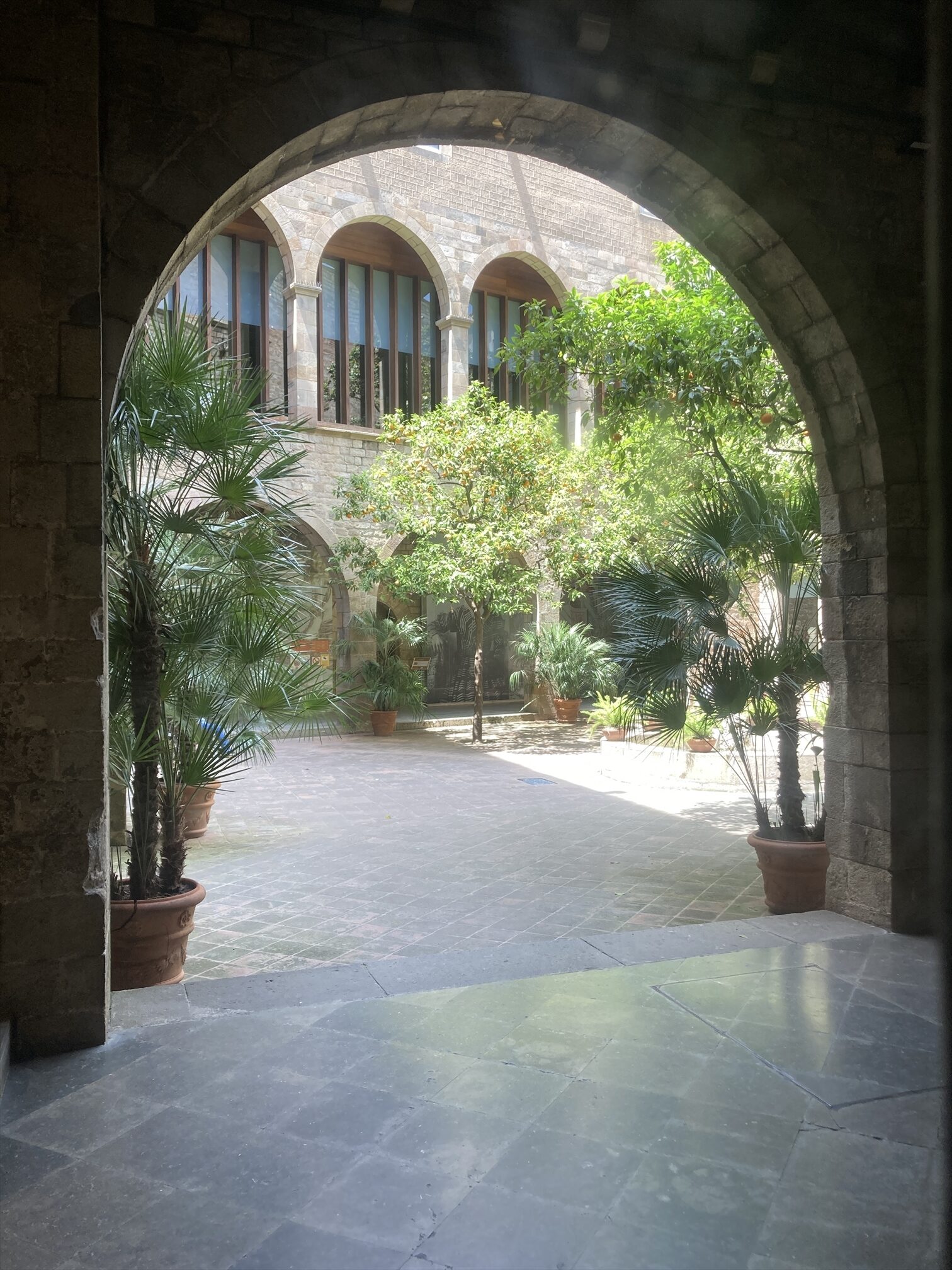 ぐだぐだ歩いてると、マレー美術館(カタルーニャの彫刻家、フレデリク・マレー)の中庭が見える場所に出ました。ていうか、マレー美術館の地下にも遺構があります云々とものの本にあってノートにメモってたんだけど、じゃあ、いまそこにいるってことなのかしら?